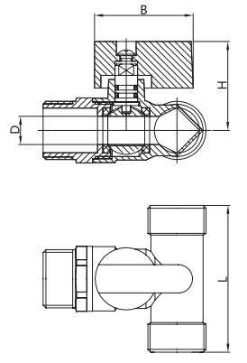 Male X Male X Male ISO14001 Tee Handle Ball Valve 3 Way Tee Valve 362.5 Psi Images |